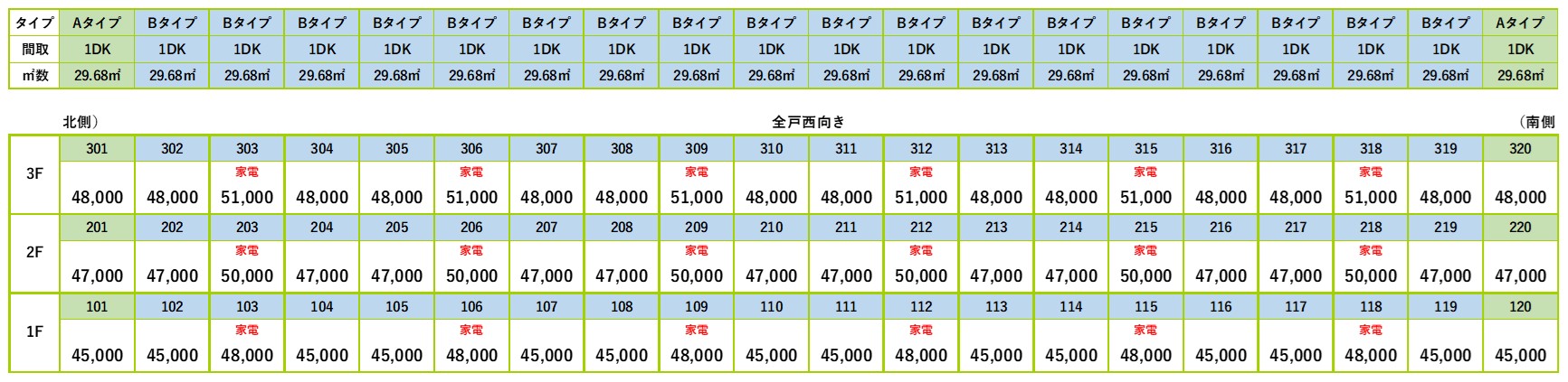 ※退去時清掃費は、家電無し/家具家電付きのお部屋で異なります。