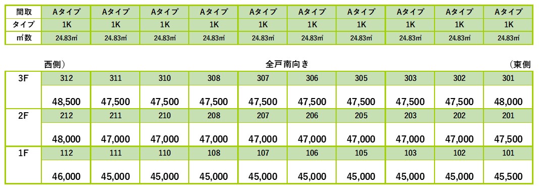 全戸南向きです。南側は敷地内駐車場となり、日を遮る建物も無く、日当たり良好です。オートロック、宅配ボックス、防犯カメラ、管理会社呼出機能もあり、学生専用ならではの安心安全を配慮した建物設備が充実しています。
