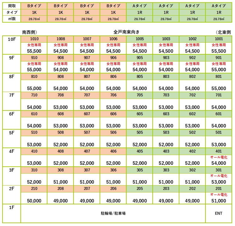 全戸南東向きで日当たり良好。オートロック、宅配ボックス、防犯カメラ、管理会社呼出機能もあり、学生専用ならではの安心安全を配慮した建物設備が充実しています。
