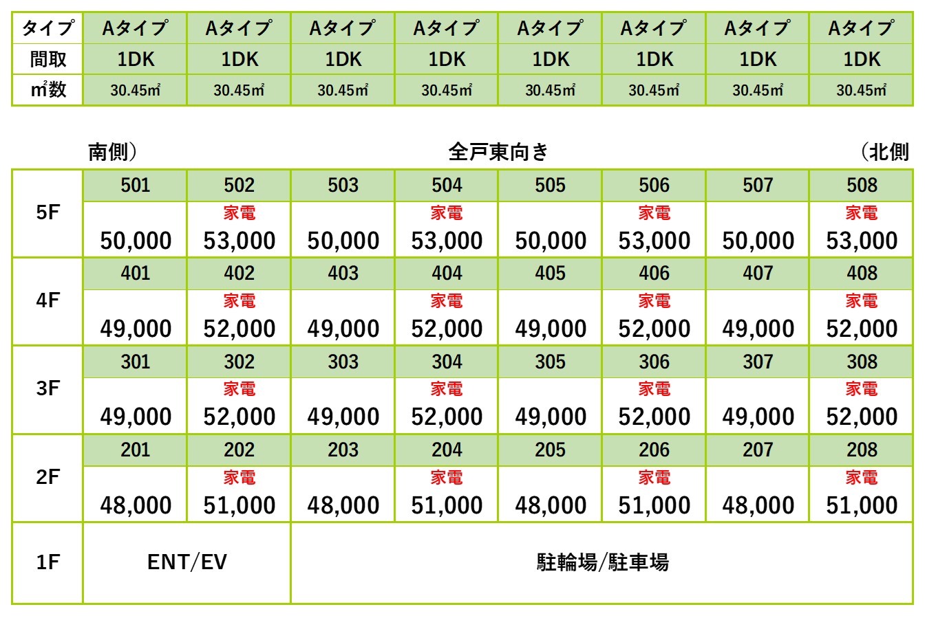 上記家賃表は、2025年10月以降の募集賃料及び家電対象部屋です。募集賃料及び家電対象部屋は変更となる可能性がございます。予めご了承下さい。