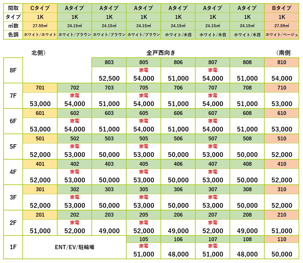 全戸西向き。オートロック、宅配ボックス、防犯カメラ、共用浄水器、管理会社呼出機能もあり、学生専用ならではの安心安全を配慮した建物設備が充実しています。