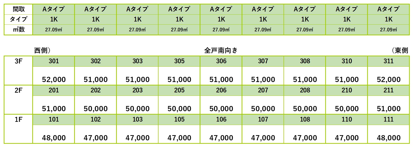 上記家賃表は、2025年10月以降の募集賃料です。募集賃料は変更となる可能性がございます、予めご了承下さい。